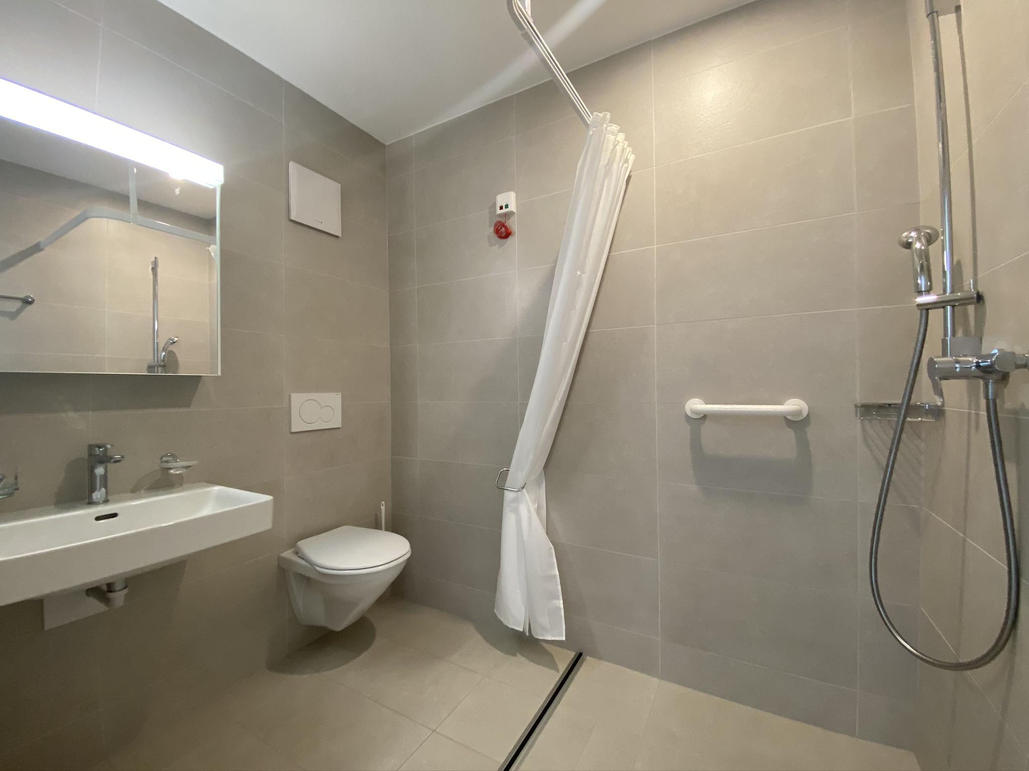 Les appartements sont conçus sans barrières architecturales (portes larges, absence de seuils, équipements ergonomiques, système d’alarme en cas de malaise, etc.).