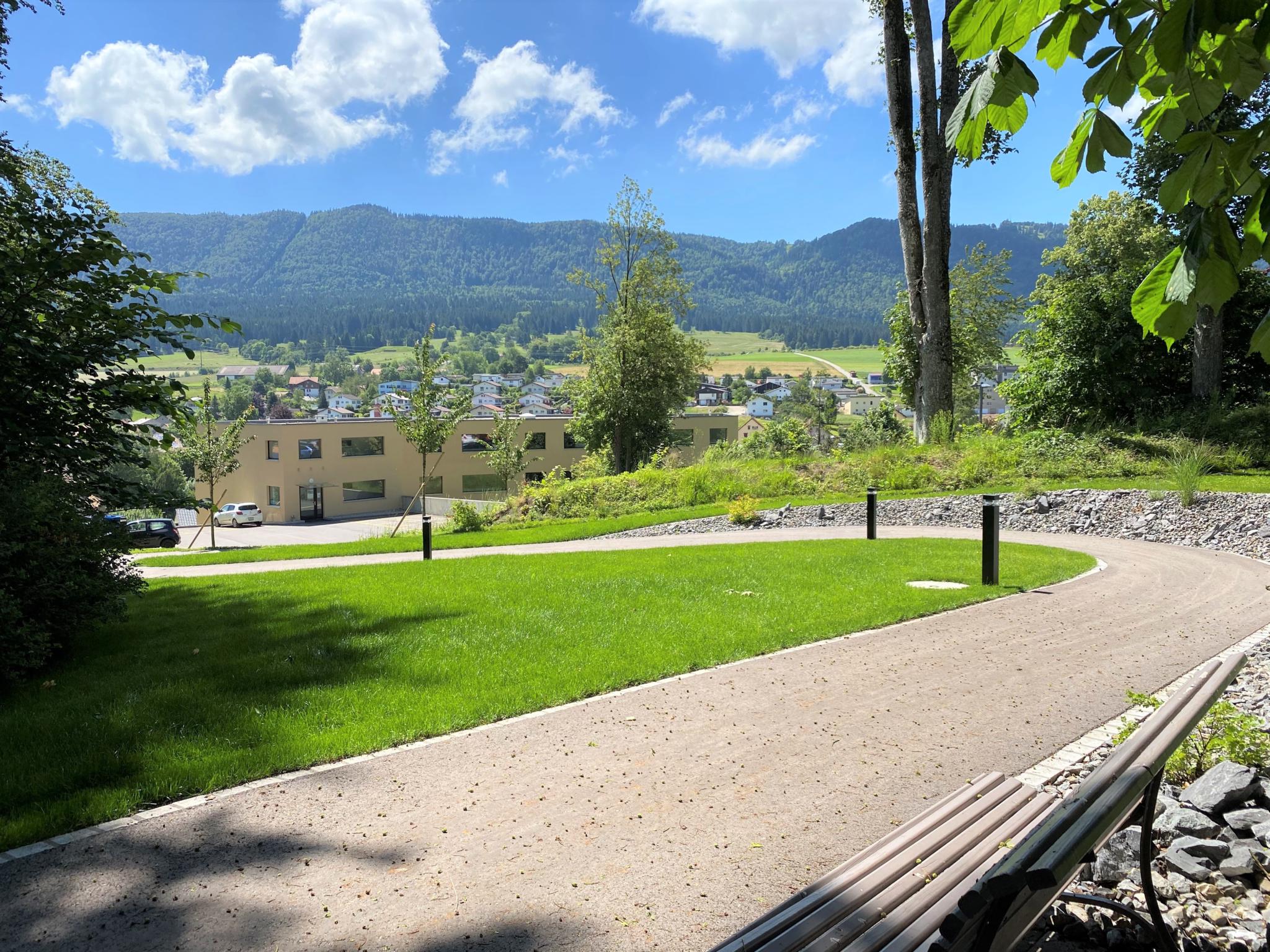 Dans un environnement verdoyant, en bordure de forêt, sur la parcelle du home La Colline.