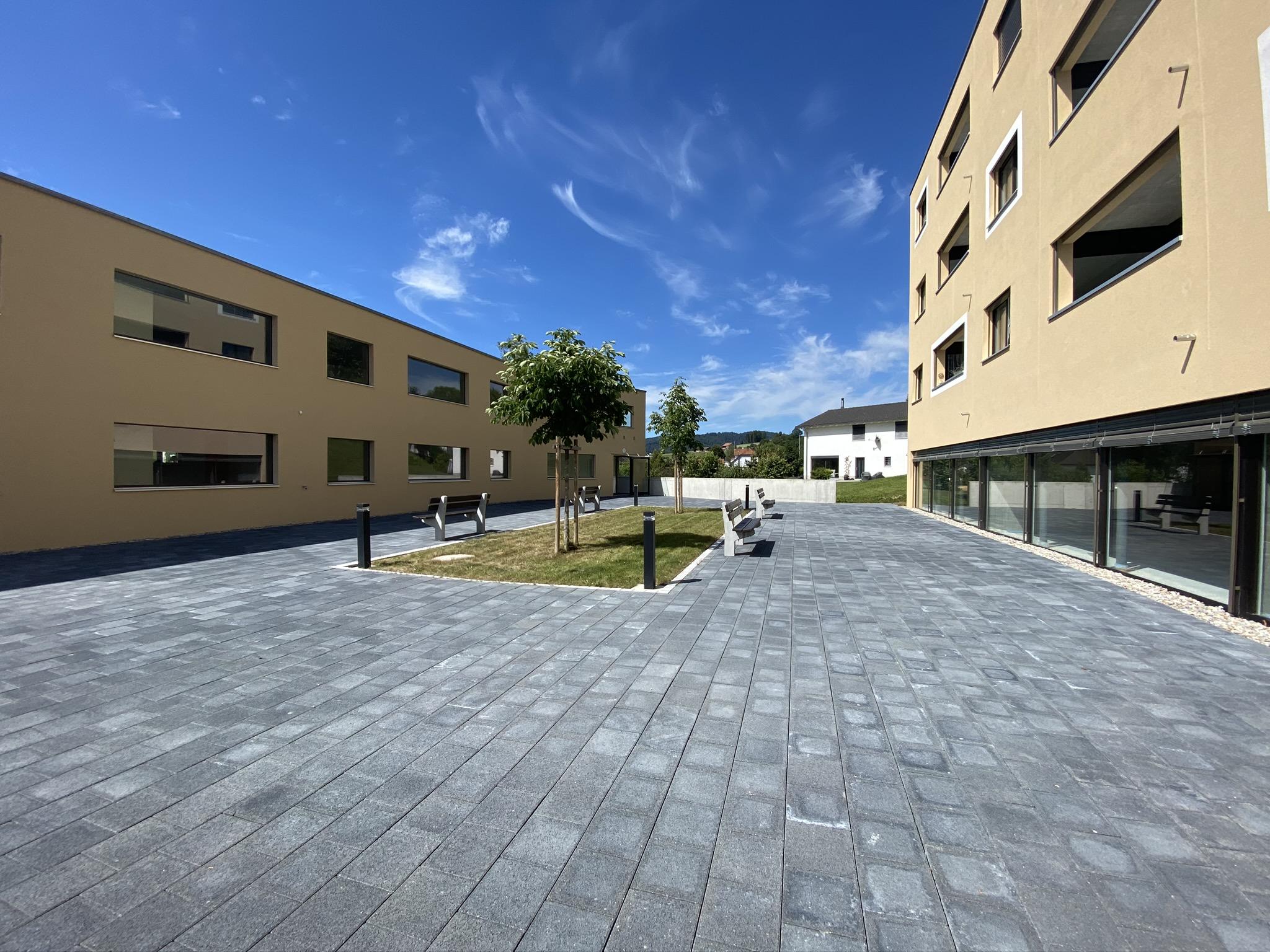 Les bâtiments sont attenants au complexe du home médicalisé La Colline, permettant un accès facilité à des prestations de soins et de services selon les besoins des résidents.