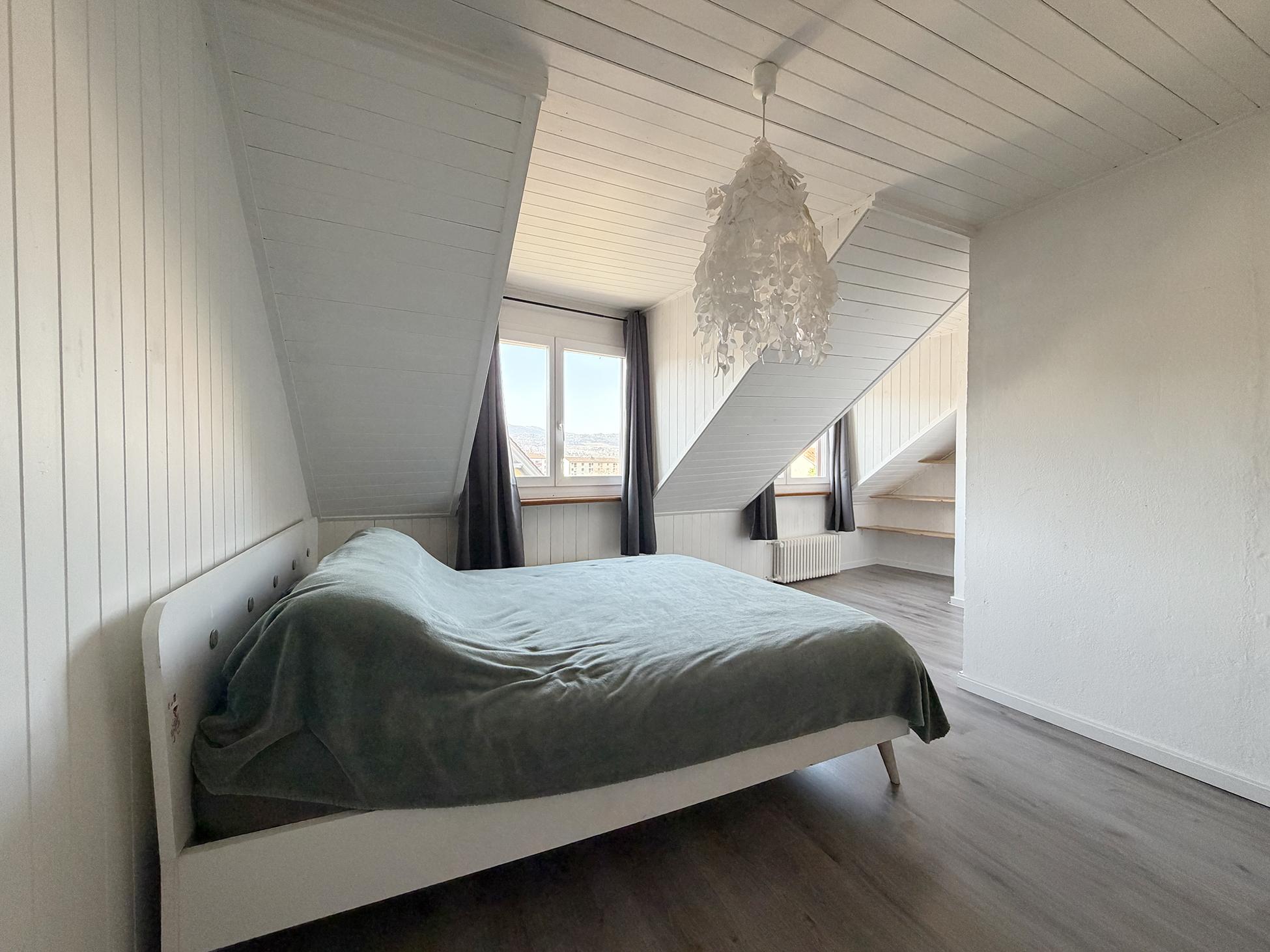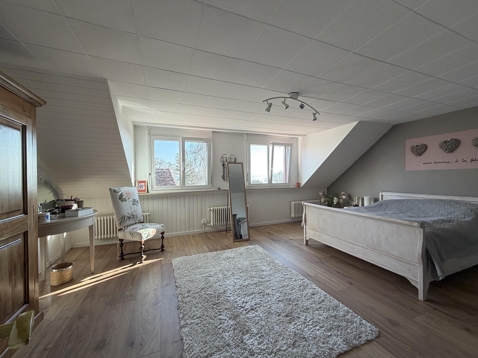 Les combles dévoilent une suite parentale bénéficiant d’une superbe vue sur le port, le lac et les Alpes, ainsi qu'une chambre supplémentaire et une salle de douche entièrement rénovée.