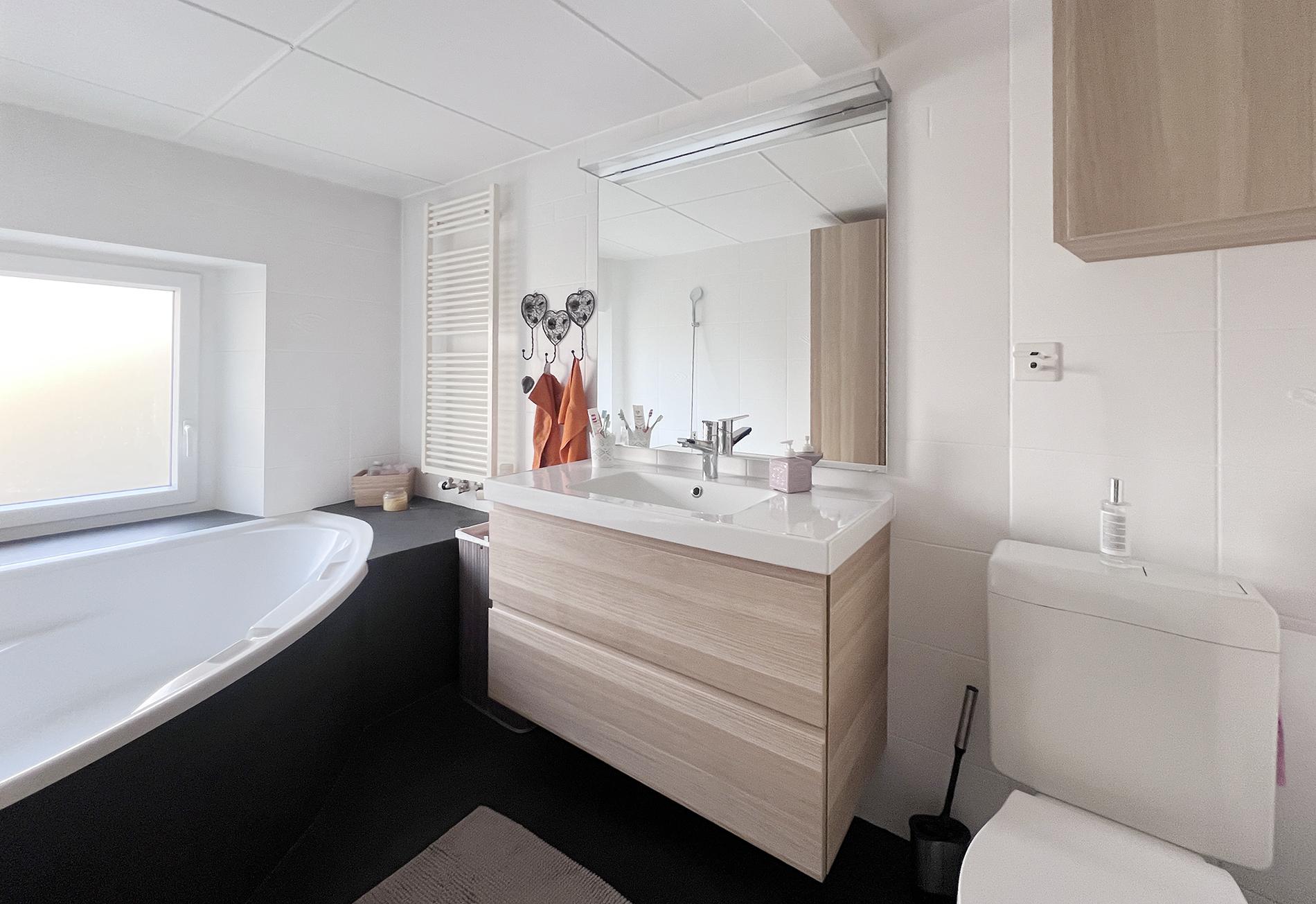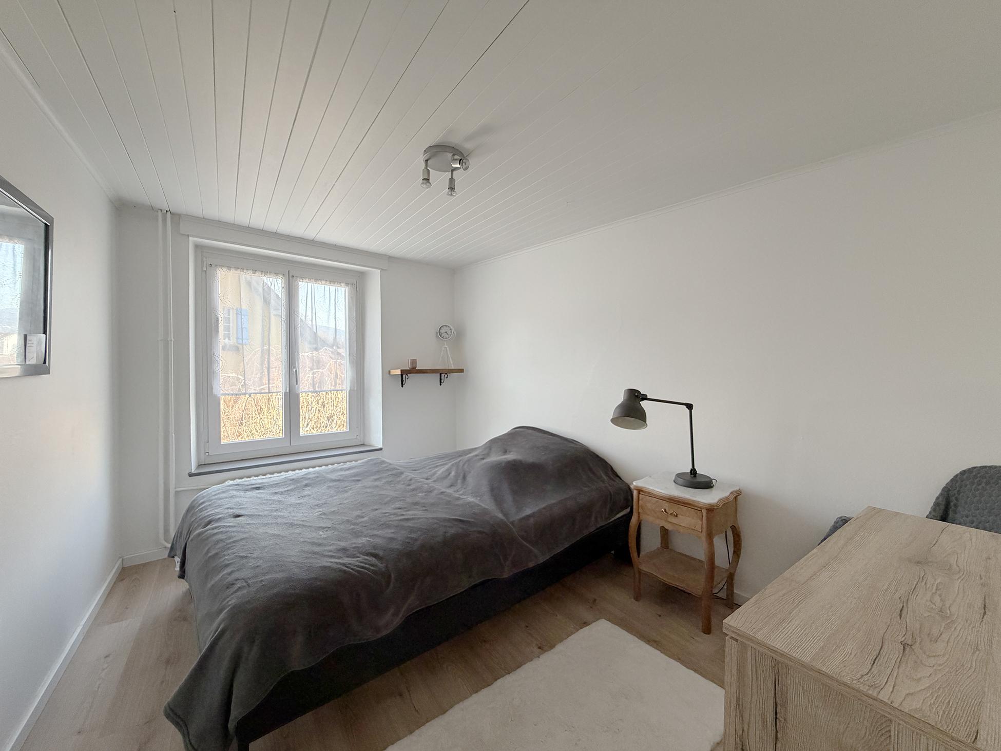Répartie sur quatre niveaux, la maison s’ouvre au rez inférieur sur un local chauffé ainsi qu’une buanderie avec accès direct à un agréable jardin orienté plein sud.